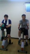 2枚目はふじもっちゃんと、長谷川さん仲良くエアロバイク中。